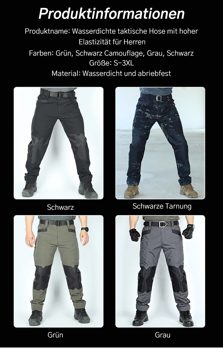 Herren Elastische Wasserdichte Taktische Hose. Atmungsaktiv, abrieb- und reißfest sowie resistent gegen Ölflecken