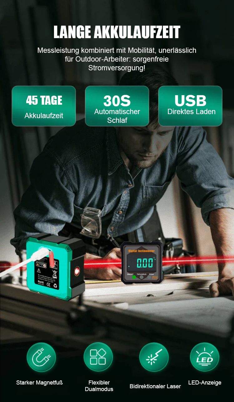 Ultrahelle Laser auf beiden Seiten + Winkelverriegelung machen das Verlegen und Nivellieren von Fliesen zum Kinderspiel