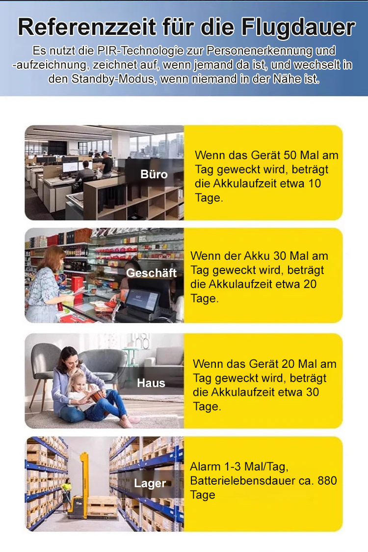 Super lange Akkulaufzeit, einmaliger Gebrauch für ein halbes Jahr. In einer Sekunde installiert und die Überwachung jederzeit und überall ansehen