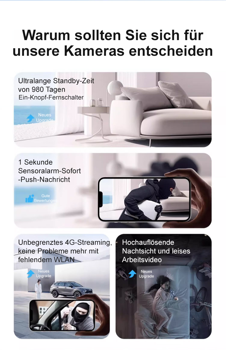 【Ultralange Akkulaufzeit】Kabellose Kamera.Kein Anschließen erforderlich + lange Akkulaufzeit