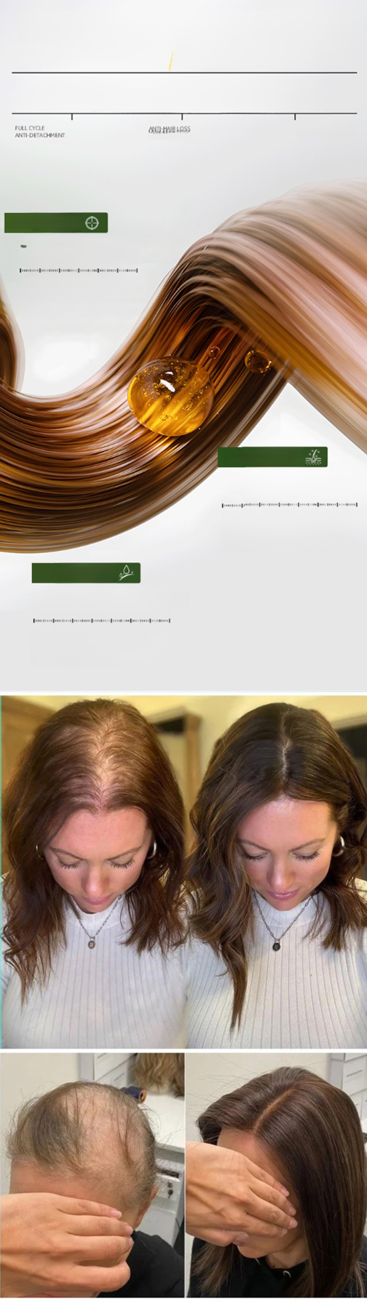 Von Ärzten in München empfohlen, sind die Ergebnisse bereits nach zwei Wochen sichtbar, das Haar wird länger und dicker.