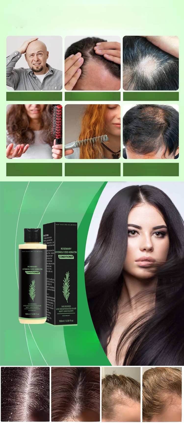 Rosmarin-Keratin-Volumenshampoo.Beruhigt die Kopfhaut und ist für verschiedene Haartypen geeignet